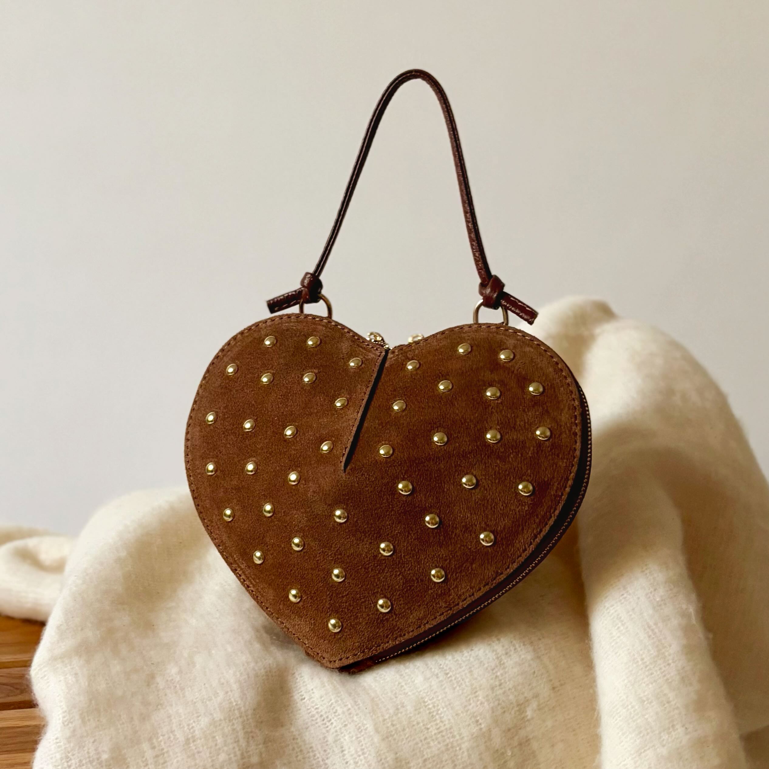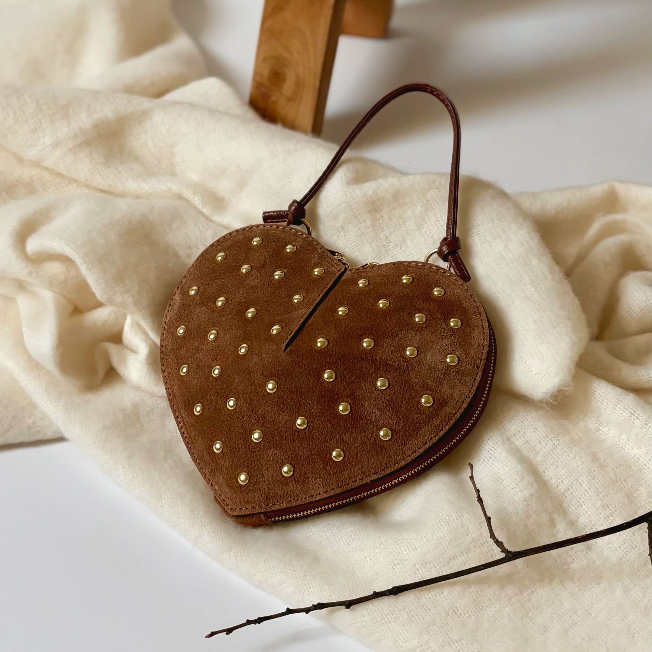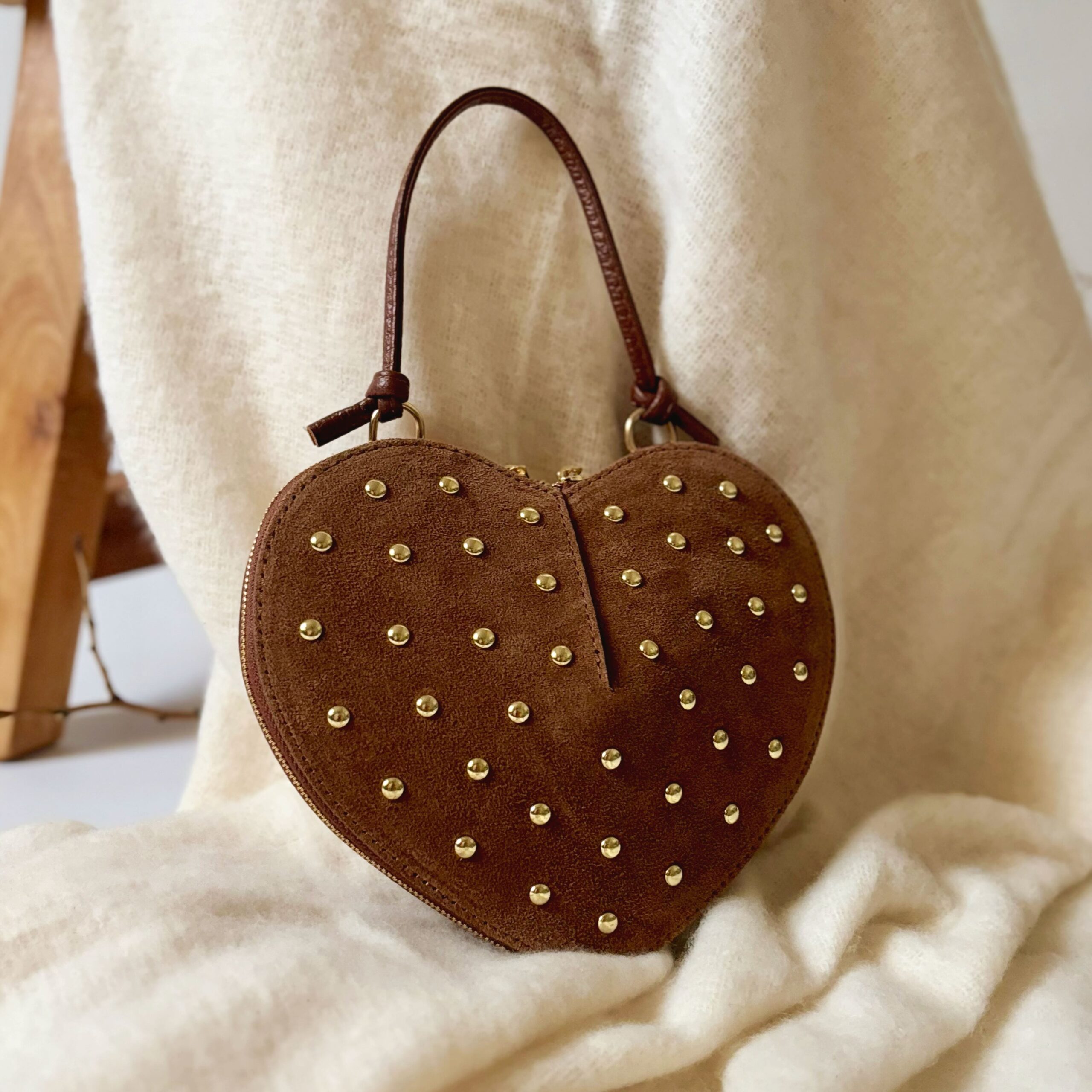 Une silhouette tendre, sculptée dans un cuir suédé velouté et ponctuée d’éclats dorés.