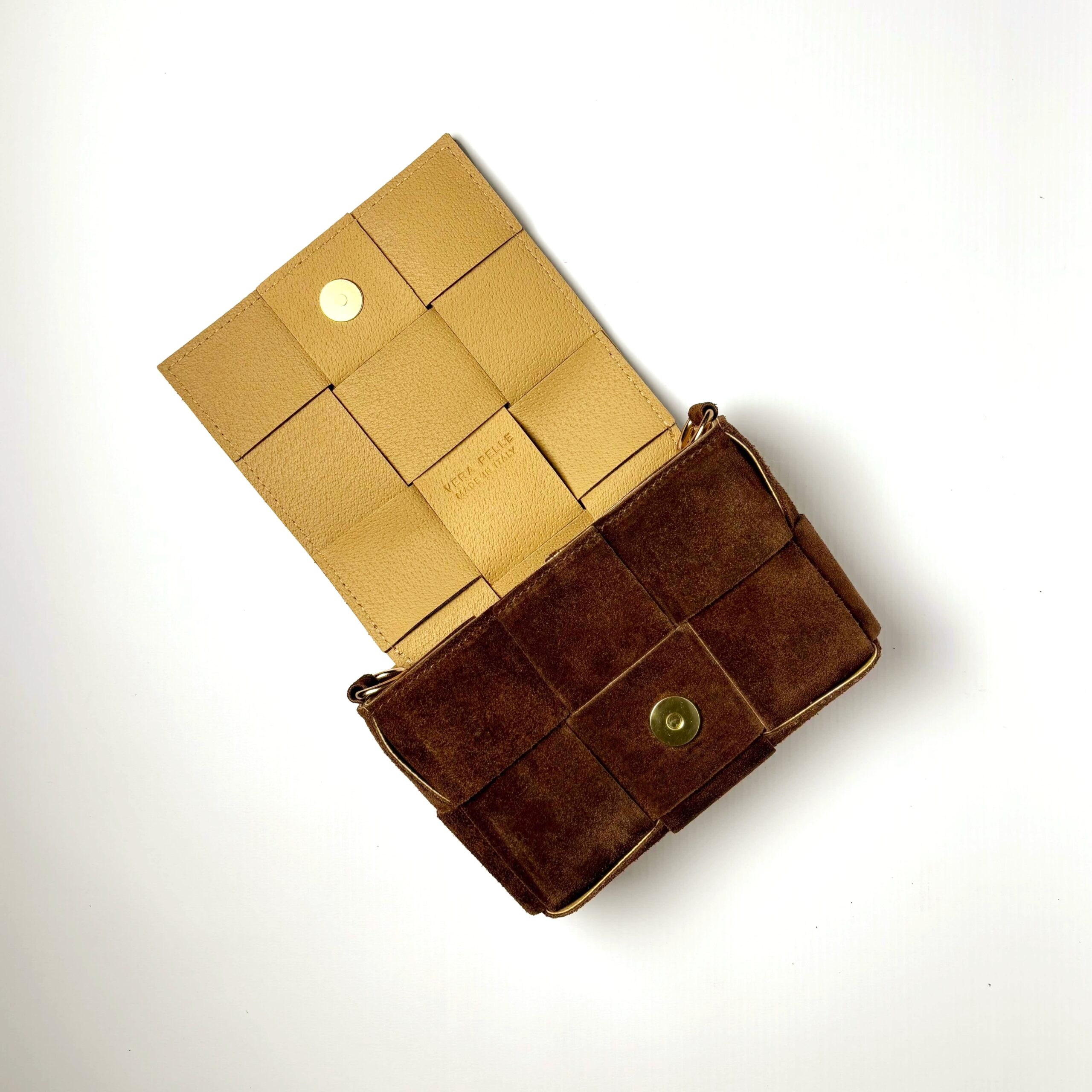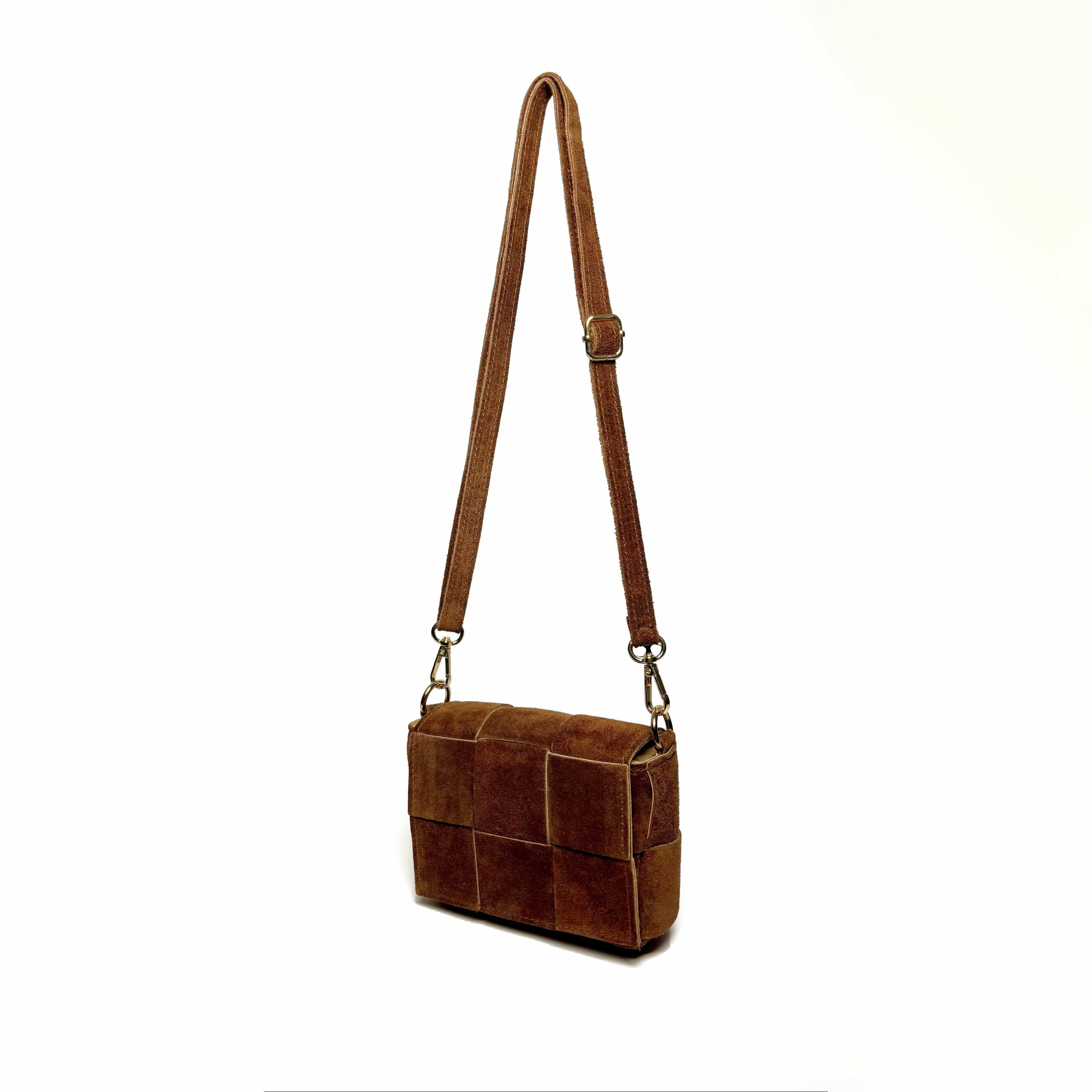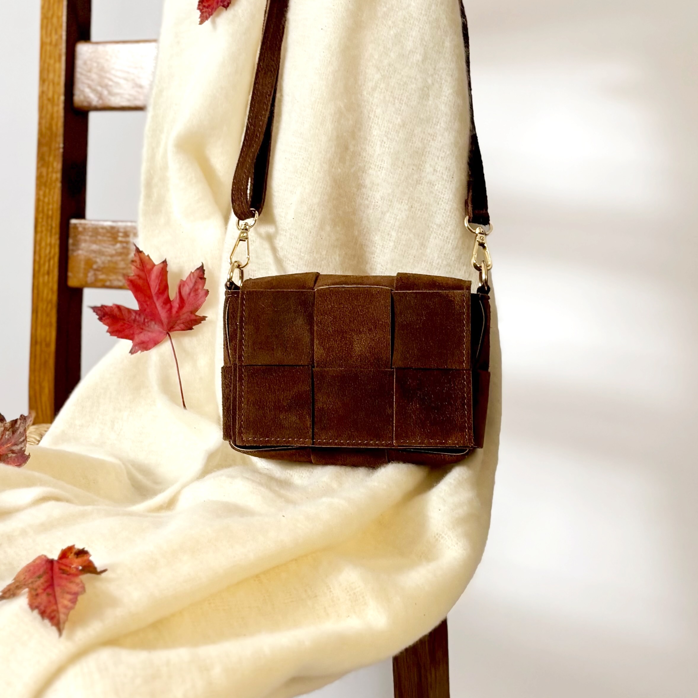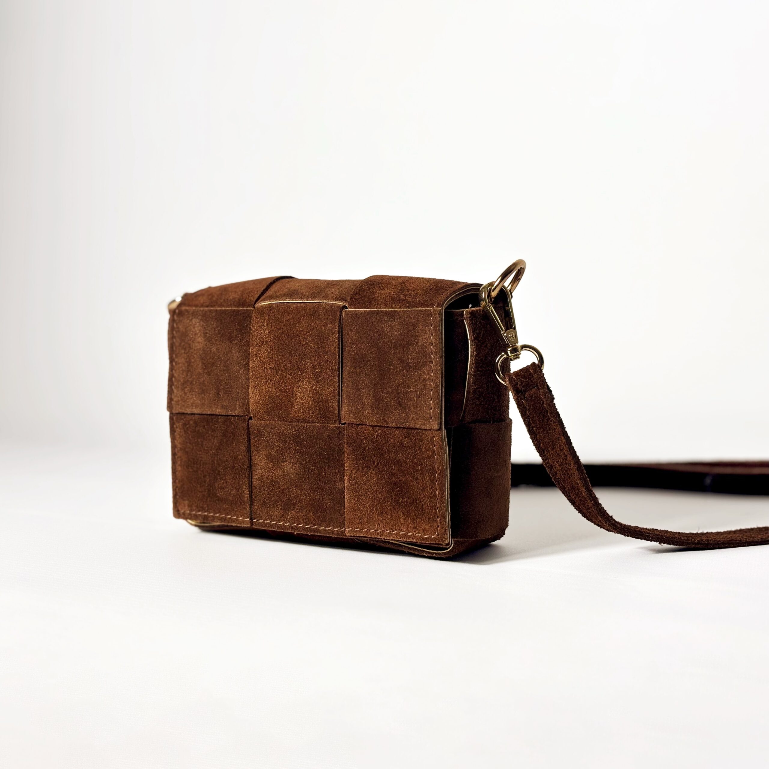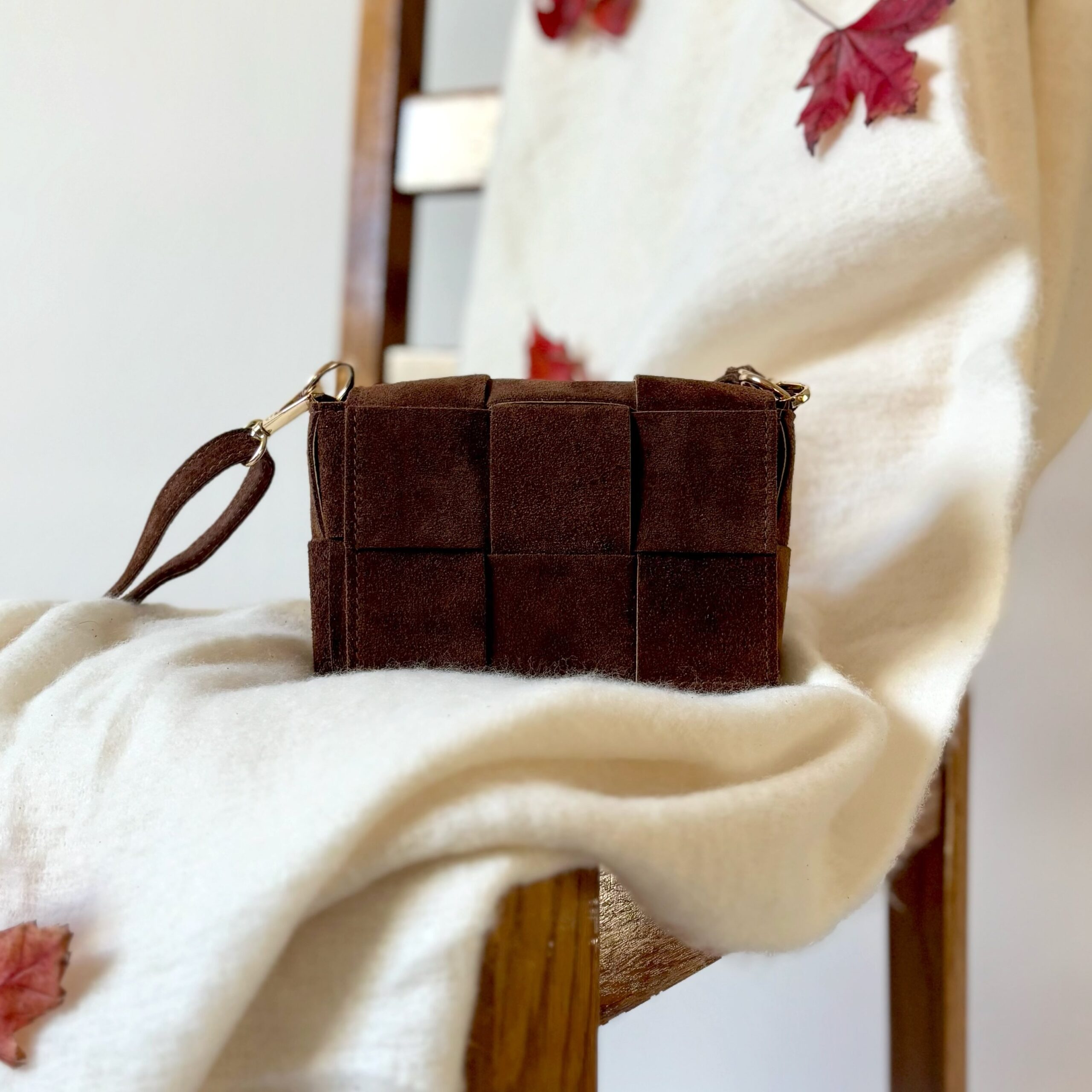 Un tressage délicat, un cuir suédé italien au toucher velouté, une silhouette compacte faite pour accompagner le quotidien.